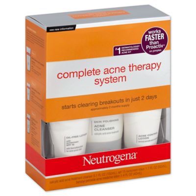 Neutrogena® Complete Acne Therapy System includes our Skin Polishing Acne Cleanser, Acne Control Lotion, and Oil-Free Moisture with SPF 15 Neutrogena ... Return Doc